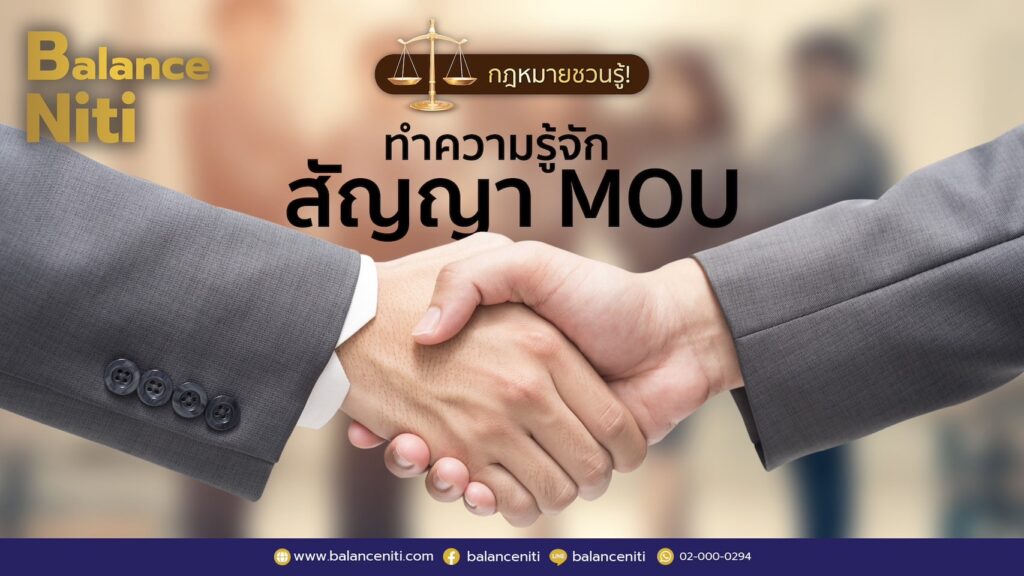 จากข้อมูลหวังว่าทุกคนจะเข้าใจสัญญา MOU กันมากขึ้น หากต้องการติดตามเกร็ดความรู้เรื่องกฎหมายสามารถติดตามข้อมูลข่าวสารหรือสาระน่ารู้ต่าง ๆ ของเราได้ที่ Facebook : Balance Niti Law Firm หากต้องการที่ปรึกษาทางด้านกฏหมาย สามารถติดต่อได้ที่ Line : @balanceniti