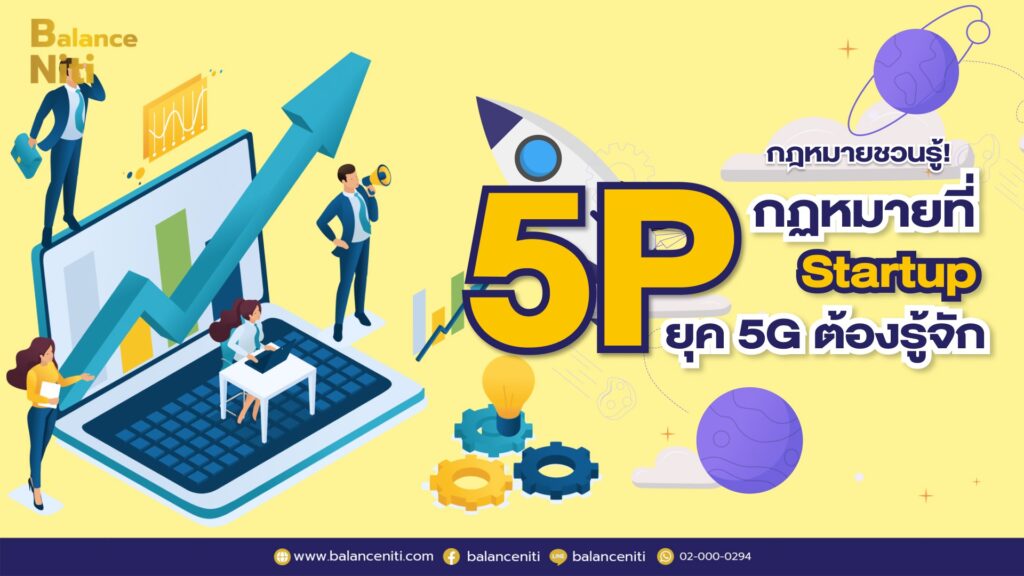 กฎหมาย 5P นั้นเป็นพื้นฐานที่ผู้ประกอบการหรือ Startup ควรทำความรู้จักและเข้าใจหลักการของตัวกฎหมาย อันได้แก่ P-Presence / P-Partner / P-Product / P-People และ P-Public