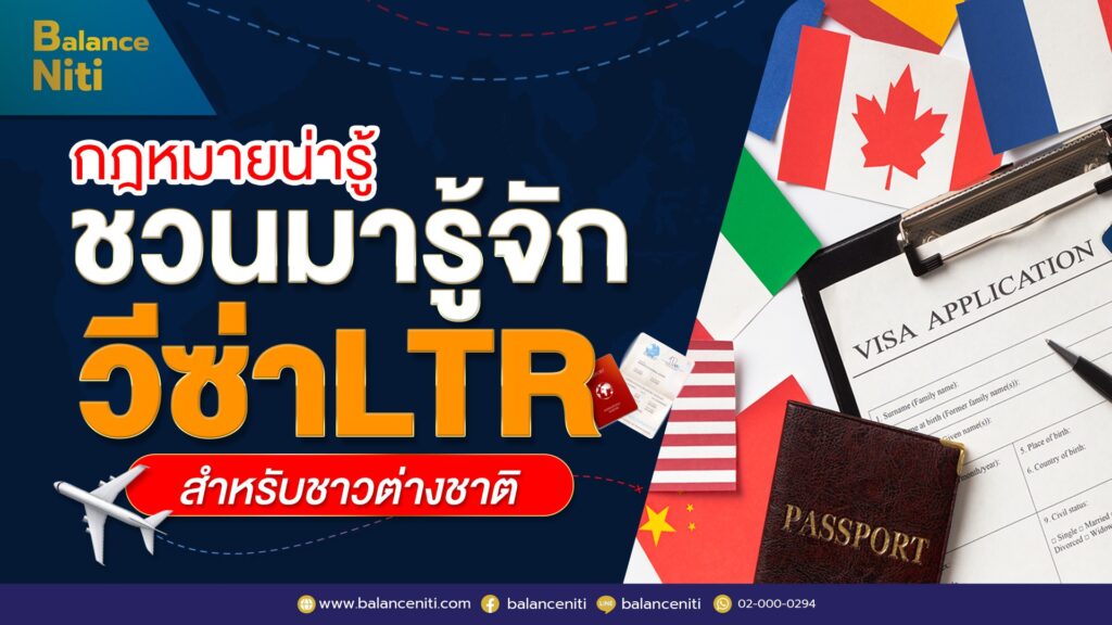 สำหรับนักธุรกิจหรือนักลงทุนสามารถแชร์ข้อมูลวีซ่า LTR ให้พาร์ทเนอร์สนใจจะเข้ามาทำธุรกิจหรือลงทุนในประเทศไทยเพื่อเป็นการกระตุ้นให้ตัดสินใจได้ง่ายยิ่งขึ้น สำหรับการขอหนังสือ VISA ต้องจัดเตรียมเอกสารให้ครบถ้วนและถูกต้องตามที่ได้กำหนดไว้ รวมทั้งควรเตรียมตัวในการตอบคำถามเพราะอาจจะมีการสอบสัมภาษณ์ในบางประเทศ หากต้องการปรึกษาขั้นตอนในการเตรียมเอกสารขอหนังสือ VISA หรือปรึกษาข้อมูลด้านกฏหมายอื่น ๆ ติดต่อได้ที่ Line : @balanceniti และสามารถติดตามข้อมูลข่าวสารหรือสาระน่ารู้ต่าง ๆ ของเราได้ที่ Facebook : Balance Niti Law Firm